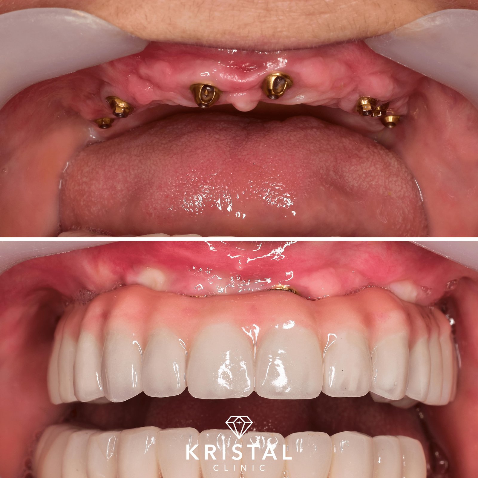 • Check the Clock: Is the “After” photo 12+ months post-op? If you only see all on four dental implants photos from the surgery day, you are looking at a temporary, not the final result.